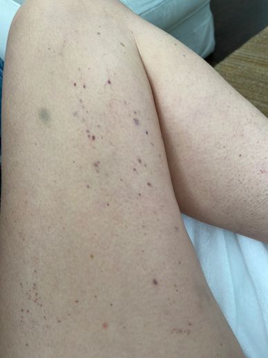 I guess it's obvious my platelets were low. I had to go in for a platelet transfusion that week.
