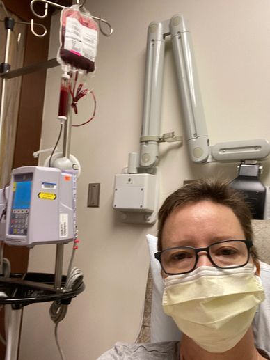 Getting some much needed blood. Thank you to everyone who has donated blood. I received many many units over my stays. I'm so grateful for you!
