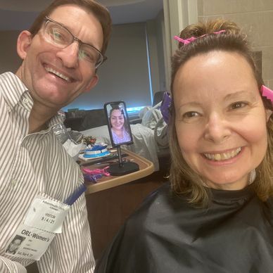 Once Rick started cutting, I could see that my short curly hair was not going to look like I had envisioned. I told him to just shave it off! Amanda and he agreed on a number eight clipper instead. He did a great job!