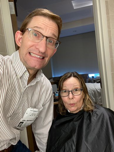 It was my decision to go ahead and cut my hair short before it began falling out. I think I needed to do this for my own mental state. We tried to make it as fun as possible. Rick didn't want to be the one responsible for my new look, but after much prodding, he conceded. My niece who is a cosmetologist guided Rick through the process via Facetime.