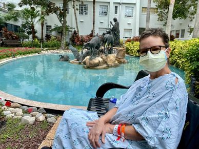 This picture of the IV in my arm means I needed more lines and even more pumps. I developed mucositis and was in extreme pain. I felt as though I had shards of glass in my throat. I couldn't eat, swallow my pills and it hurt to talk. I was nauseated and was vomiting which made things worse. It was during this time that I felt as though I was in a dark hole. I knew God was with me but I couldn't feel His presence. I have never been this low. I felt as if I had no more fight in me.